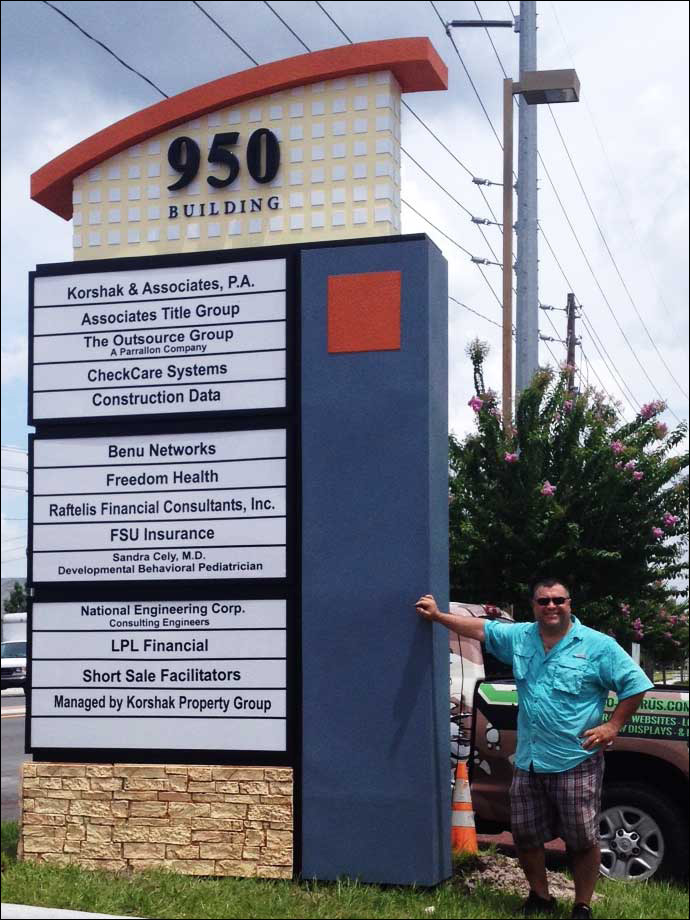 A cabinet sign is a sign that contains all the text and/or logo symbols within a single enclosed cabinet and may or may not be illuminated. If you picture a shoe box with a piece of acrylic covering the face of the sign where you can put lettering and logos and text…that is a cabinet sign! Sign-O-Saurus can design, build, permit, and install a cabinet sign for you. We usually reface existing cabinet signs depending on how it is made. If you are interested in re-facing a cabinet sign, or having a brand new one made, give us a call today and we will develop the best solution to suit your needs.